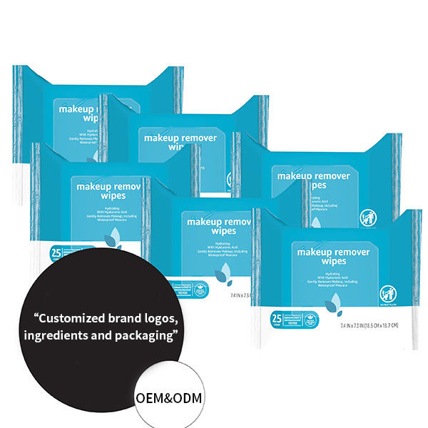 Fábrica Chinesa 6 Pacotes de 25 Limpezas de maquiagem não comedogênicas sem fragrâncias